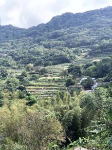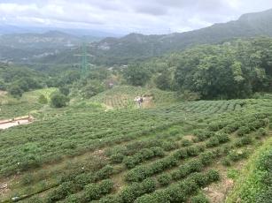 車道を歩いていると、斜面に広がる茶畑や、先ほどまで歩いていた樟樹歩道を眼下に見渡せる場所が、途中にあります。
