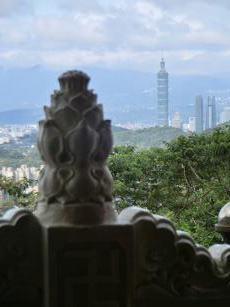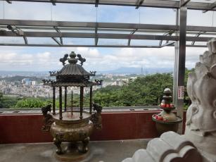 樟山寺の本殿前からは、台北101を含む台北市街の大パノラマが一望できます。