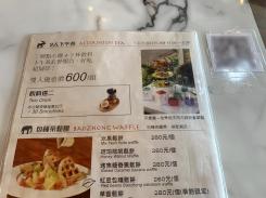 アフタヌーンティー(1セット2人分600NTD+サービス料10%合計660NTD(約3,300円))を注文してホっと一息つく間もなく、スタッフの方がドリンクメニューを持ってきて、「この中から好きなドリンクを選んでください」みたいなことを言われたので、同行者さんはホットの“猫空茶”を、私はアイスのフルーツティーをチョイス。