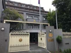 カンボジア大使館の建物が見える所に行くと、大使館の門扉から入る女性1人をお見かけし、「お!受領する人がいる!」と思いつつ、ビザ専用の出入口のドアを開けると、先ほどお見かけした方がビザの受取待ち中。