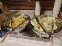 17時25分から17時40分、ホテルのドリンクバーでホットの緑茶とアイスのペルガモットピーチティーをいただいて、大分早めの部屋でのまったり夕食タイム。