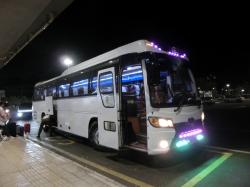 11名のツアーメンバーに40人は乗れそうな、しかも2-1配列、レッグレスト付きの韓国の中古のバスが配車されました。以後、今回のツアーで使用されたバスは、全て韓国の中古バスでした。