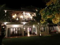 常夏の国らしい花々に迎えられて夕食のレストランに入ります。