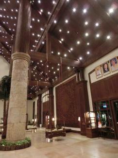 ガイドさんがチェックイン手続きをしている間、ロビーのソファに座って待ちます。その間、ロビーのあちこちを写真撮影。天井が高くて解放感抜群♪