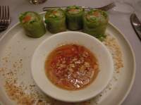 マンゴージュースは普通にフレッシュマンゴージュースで甘く、生春巻きはシャキシャキで美味しかったものの、このあとの料理のボリュームが分からなかったので1つ残しました。