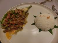 こちらのクメール料理が、今回のアンコール遺跡旅行での食事で私的に最も美味しい食事でした。それは、多分、クメール料理を見るのも食べるのが初めてで、クメール料理についての予備知識、先入観が全くなく、単純に食べたものの味で美味しいと思えたからです。
