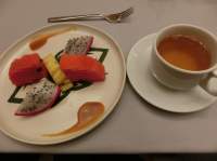 季節のフルーツと一緒にサーブされたお茶は何のお茶だったのか分かりませんでした。わりとさっぱり系のお茶でしょうか。