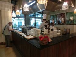 朝食レストランの入って最奥の右手に玉子料理のコーナーがあり、シェフがオーダーがあるとオムレツを作ってくれます。
