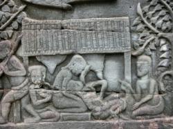 水牛の血を飲むと戦争に勝てると信じられていたそうで、生贄にされる水牛のレリーフ↑もありました。