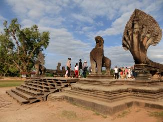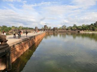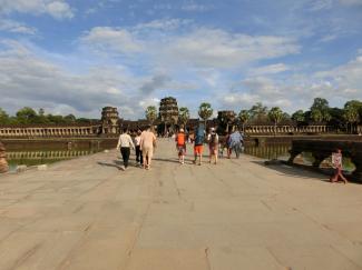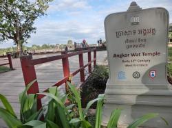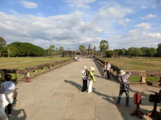 アンコール・ワットの西参道の環濠にかけられた参道は長く修復工事中でしたが、2023年11月に修復が終了し、参道を歩いて行けるようになったとのことです。