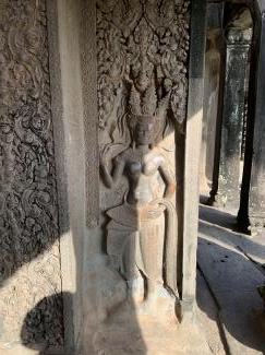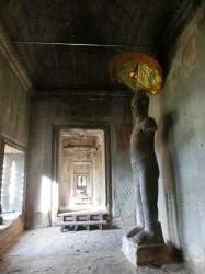 西塔門には美しいデバター像がてんこ盛り。美の競演を繰り広げています。そんな美の競演から一転、周壁内の回廊には、仏像がひっそりと佇んでいたりまします。