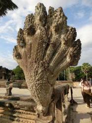 こうして見ると、ナーガ像の背景は青空。少し角度が違うだけで、背景が青空になったり、雲に覆われた空になったりの、雲行きです。