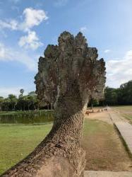 7つの頭のナーガ像のお顔側と頭の後ろ側。ナーガ像は、本当にあちこちで私たちを出迎えてくれます。