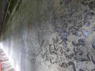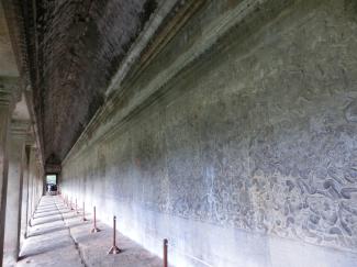 右上の写真のずっと先の回廊の端の壁まで「ラーマーヤナ」の物語のレリーフが刻まれています↑。