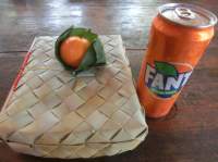 店先の赤いクーラーボックス?→から、私はファンタ・オレンジ、同行者さんはファンタ・グレープを選び、バスに積み込まれていたお弁当が並べられた席に着席。