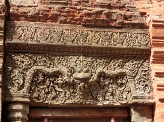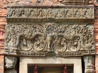 まぐさ石には、アイラーヴァタ(インド神話に登場する白い象)と左右にナーガが彫られているのが見られます。