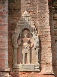 こちらの祠堂のデヴァター像では、衣服のひだまで、はっきりと見られます→。