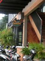 このカフェ・アマゾンの前に駐車しているたくさんのオートバイ、私が見た限りでは全てHONDAのバイクでした。