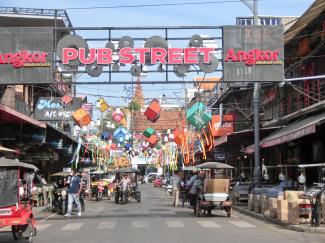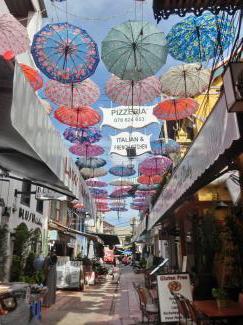 ポルトガルのアゲダで、傘祭りというイベントがあるようですが、シェムリアップでも頑張っているのですね。イタリアン・ストリートというのが、この通りの名称のようで、イタリア料理のお店が軒を連ねています。