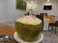 ツアーメンバーさんのドリンクが出てから、しばらく間をおいて私たちのオーダーしたココナッツジュースが私たちの目に前に置かれ、目が点になりました。