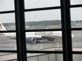 幸い、ゲート前の大きな窓からは空港内を行き来する航空機がよく見えます。嬉々として外を見ていると、ゲートに搭乗するはずのスターラックス航空機が到着していないことに気づきました。