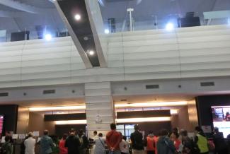 ガイドさんから「後ろで待っているように」言われたので、全員が揃うまで制限エリア出口でツアーメンバーを待つガイドさんの後ろ姿が見える場所に空いた椅子を見つけて座って待ちます。
