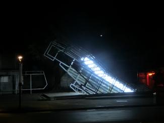 ホテルへの道すがらにあった地下道の出入口と思われる場所→。照明と造形がカッコよかったので、思わず1枚。