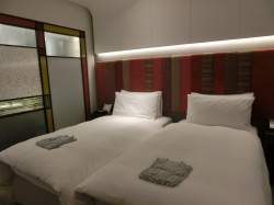 ルームキーはバスの車内で受領済ですから、ドライバーさんから預けたスーツケースを受け取った順にホテルの部屋に向かいます。1日目の宿泊ホテルのランディス台北ホテルは、ロビーに掲示されているホテルランクの表示を見ると5つ星ホテルです。