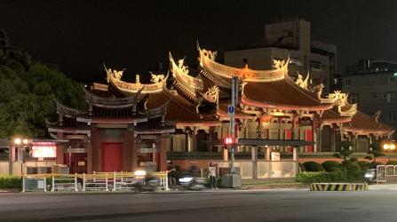 ホテルから徒歩数分の行天宮へ。到着した時間にはもう施錠されて中に入れませんでしたが、ライトアップはされていました。