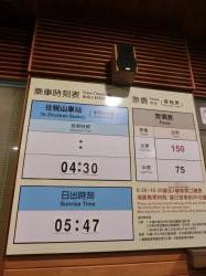 この日は、4時30分出発。祝山での日の出の時刻は5時47分。駅に掲示があります。