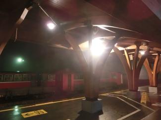 雨が降っているので、シャトルバスを降りたら、速攻、駅舎に入ります。