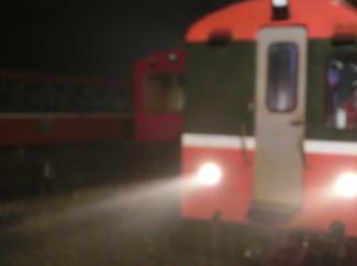 これから日の出を見に行こうと列車に乗っているわけで、当たり前ですが、車窓からは暗くてほどんど周囲の風景は見えません。