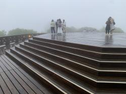 小笠原山展望台の見学場所は階段上になっていて。最上段に立って日の出時間を待っていました。