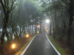 小笠原山展望台への往路では、真っ暗で周囲の状況は全く分かりませんでした。復路は周囲が明るくなってきて、ようやく道と道の周囲の様子が分かるようになりました→。こういう道になっていたのですか~。