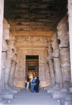 ![]() アブシンベル大神殿内部 第1列柱室から奥を眺めたところ 最深部が至聖所 |