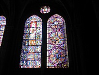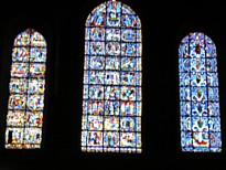 様々なブルーを中心とした色のハーモニー。大聖堂内はミサ中で礼拝が行われており、鐘が鳴り響く。ミサの邪魔をしてはならないので、静かにステンドグラス鑑賞。
