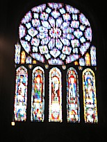 大聖堂入り口のアップ。上部の窓が内部から見ると上の左側の写真のステンドグラスのような感じに見える。