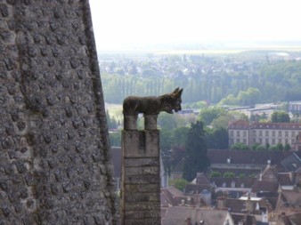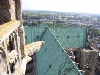 何度か街角を曲がるとシャルトルの大聖堂が目の前に現れる。青空によく映える。世界遺産のゴシック様式の大聖堂は、内部のステンドグラスが“シャルトル・ブルー”と呼ばれて有名。