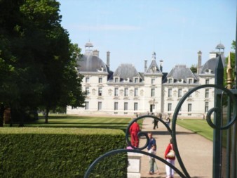 シャンボール城からシュノンソー城への移動1時間の間、シュベルニー城の前を通りかかり、バスの運転手さんが気を利かせて門の前でバスを止めてくれたので、車窓から撮影タイムとなった。