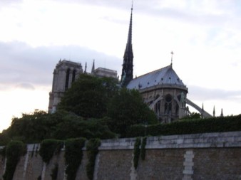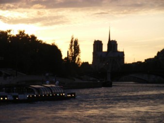 光線と船の位置の加減で、右上のような夕空に浮かぶノートルダム寺院となったりする。ちょっと幻想的でしょ。(笑)