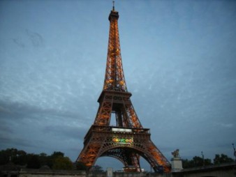 セーヌ河クルーズ大ラスはエッフェル塔。これで時刻は21時30分近く。まだ薄暮とも言える。