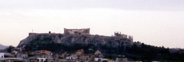 | 第1回の近代オリンピックが開催されたスタジアムは100年以上経ってもまだまだ現役で使用できる。スタジアムの片隅に、第1回のアテネに始まり、歴代のオリンピック開催地が刻まれた石碑が建っている。つい1964年TOKYOの文字を探してしまった。オリンピックの歴史に感慨ひとしお。 このオリンピックスタジアムの出入り口から、アクロポリスの丘を仰ぎ見ることができる。それを見るとアテネに来た気分に満ち溢れる。 |
