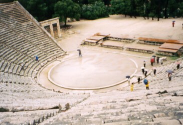 | イテラ → デルフィ → カランバカ カランバカ泊 昨日の午後から晴れてきて、本日、快晴。快晴の中、デルフィ博物館と遺跡観光(世界遺産)。 まずは博物館でかる〜く出土品を見て&説明を受けてから遺跡へ。 遺跡に青い空がはえてとても絵になる風景。丘を登っている最中に暑くてセーターを脱いでしまった。木陰に入ると涼しいのだけど、直射日光は強烈。青空の下での観光に大満足。 |