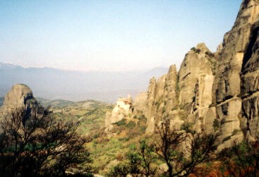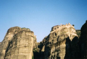| 内部見学後、3ヵ所で写真撮影のためバスストップ。これは予想外の嬉しいことで、晴天のもと、よい写真が撮れたような気がする。 修道院を巡る中、ヤギさんの群れに遭遇。メテオラの岩肌に張り付いて成長する木々の葉や草をばくばく食べている。 |