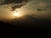 真直ぐ帰るつもりが、箱根からの下山途中、クルマの目の前に日没の富士山のシルエットが…。