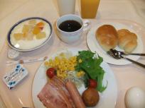 6時30分起床、7時10分〜45分朝食。朝食は和食と洋食のバイキング。私は洋食メインにしてみました。普通に日本人好みの食材の(当たり前?)の朝食で、ビジネスホテルとしては十分。