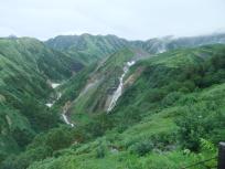 バスの車載テレビは、立山の自然、動植物の紹介ビデオを流していました。そして、見所の称名滝では、ちょっとだけ停車&ゆっくり動いて、乗客が乗車したまま滝を見られるようにサービスもしていました。