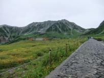 みくりが池周遊コースにプラスして地獄谷への周遊コースへも行くのは、今回の持ち時間では無理なので地獄谷は諦めました。 室堂平付近から、地獄谷への分岐、みくりが池展望台近辺が、雨が最も激しかったです。立山をバックにした青いみくりが池を楽しみにしていたのにぃ!欲があると山の天気にはフラレるのかな。