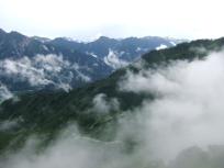 大観峰方向を見上げると、ロープウェイの乗り物が雲の中に吸い込まれて行くようでした。大観峰方向は天気が回復していないらしい。