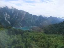 ロープウェイの進行方向右側に乗ってぼ〜っと外を見ていたら、黒部湖が見えました。
